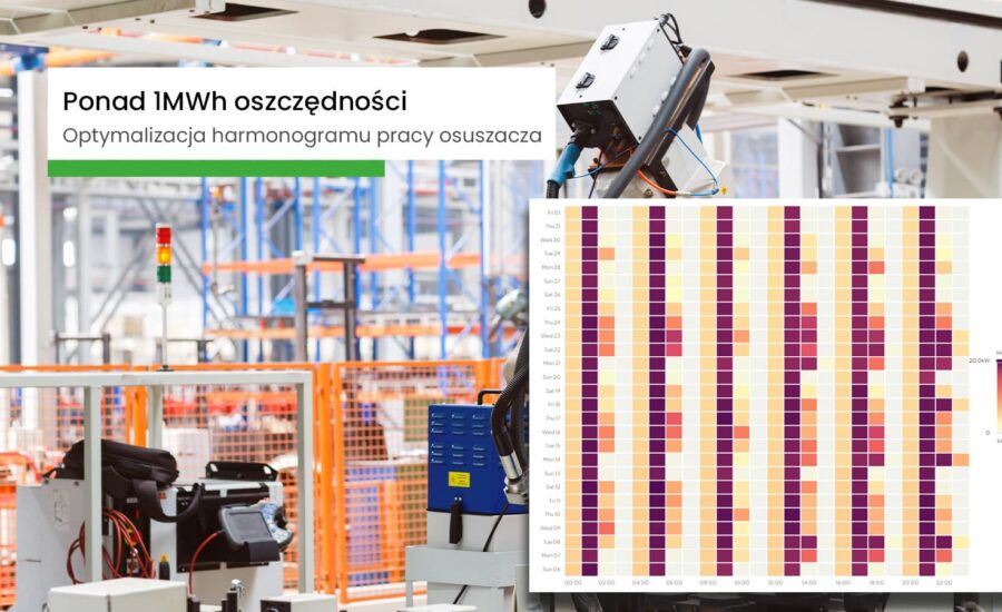 Prosta korekta harmonogramu pracy urządzenia pozwoliła wyeliminować marnotrawstwo energii i przyniosła ponad 1 MWh oszczędności miesięcznie, co przełożyło się na 1000 zł oszczędności tylko na jednym urządzeniu.